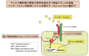 • マウスにおけるウィルス糖尿病の感受性遺伝子を世界で初めて発見し、その機序を明らかにすることができました。